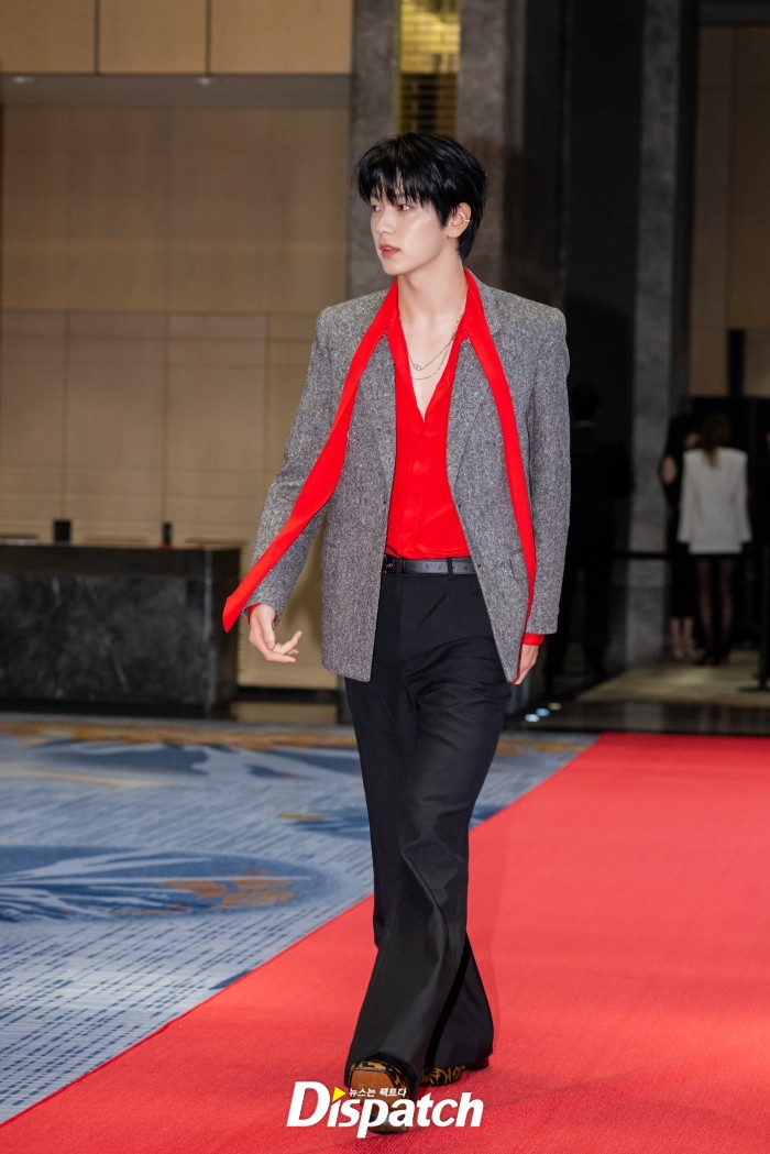 TXT 수빈이 레드카펫을 밟고 있다.