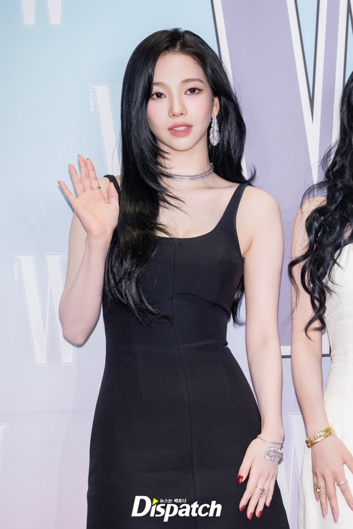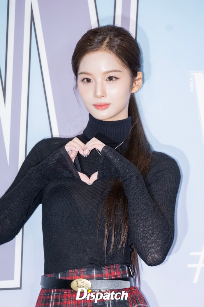 아이브 장원영, 에스파 카리나, 엔믹스 설윤이 포즈를 취하고 있다.