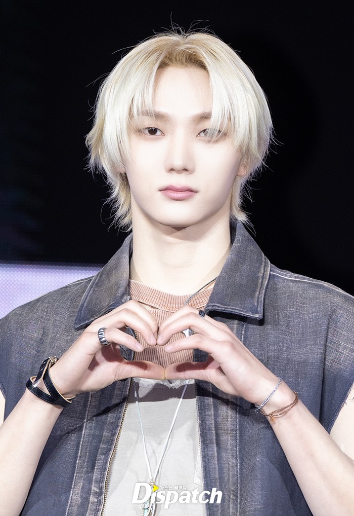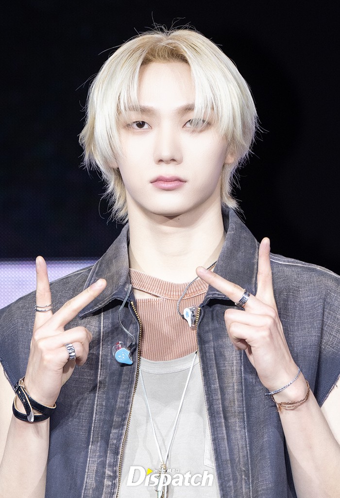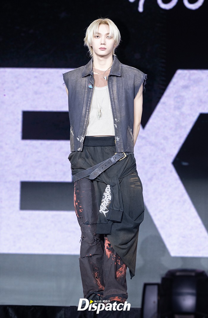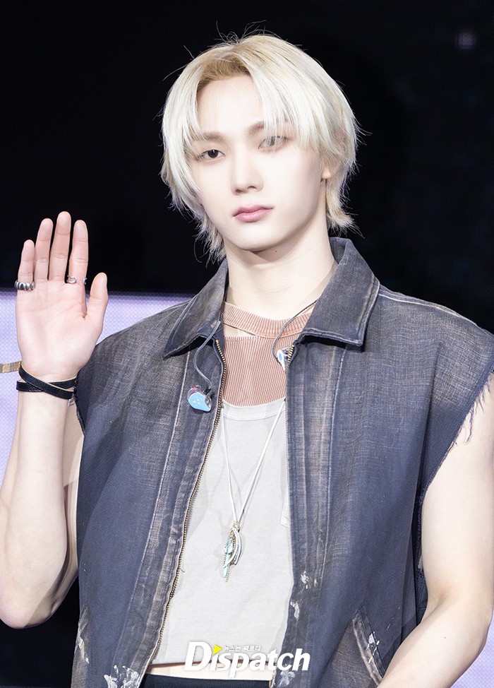 성호는 독특한 컬러의 진 의상으로 멋진 스타일을 선보였다. 금발 헤어로 여심을 사로잡았다.