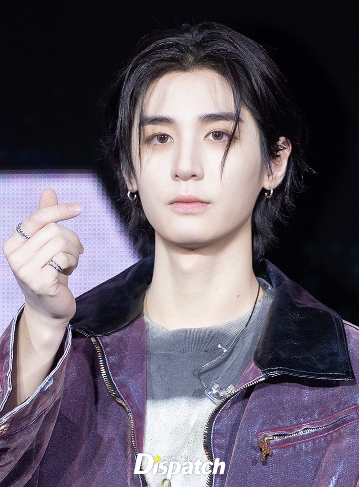 이한은 퍼플 컬러 자켓과 카고팬츠로 멋진 스타일을 보여줬다. 빛나는 비주얼로 여심을 사로잡았다.