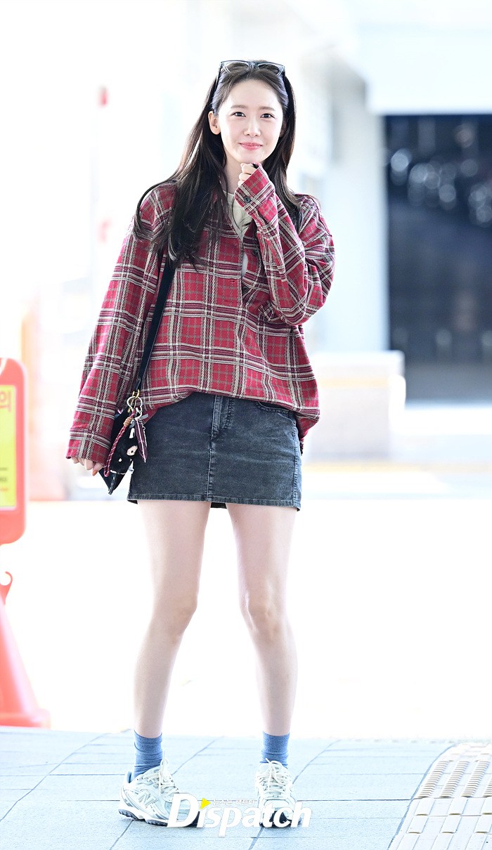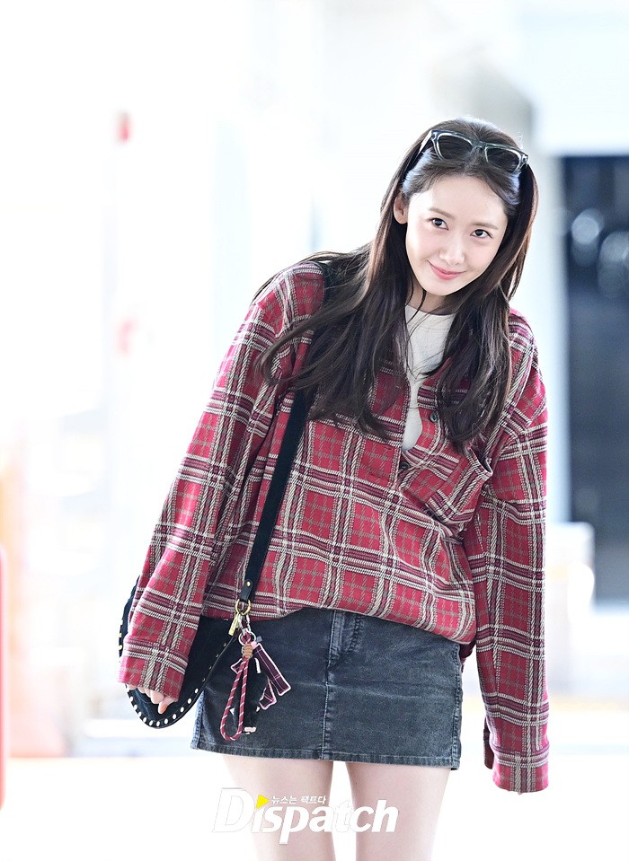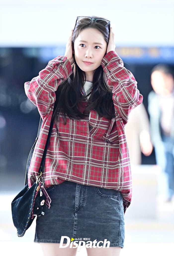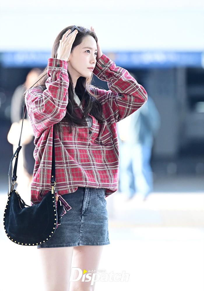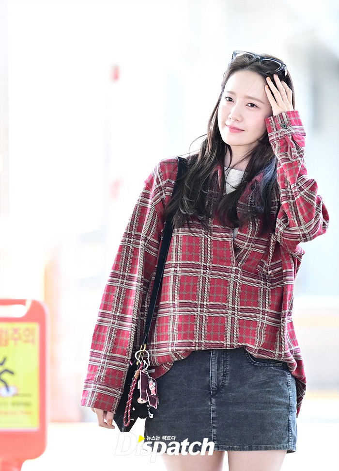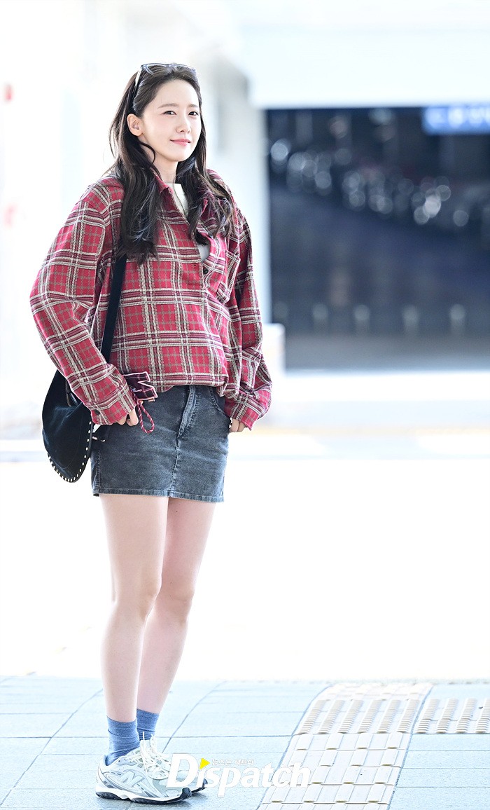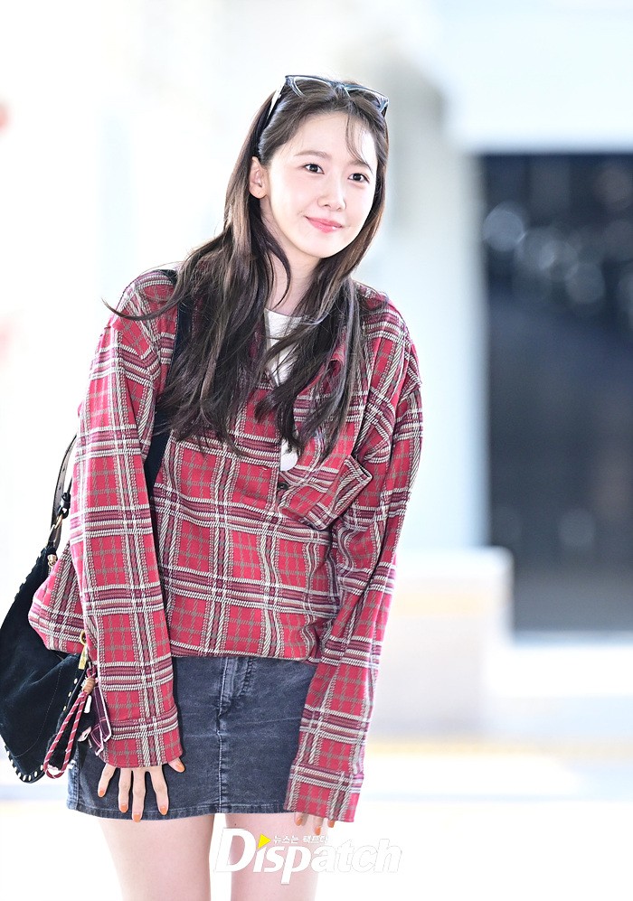 임윤아는 청순한 비주얼로 시선을 사로 잡았다. 체크무늬 셔츠와 데님 미니스커트로 연출한 캐주얼한 공항패션도 돋보였다.