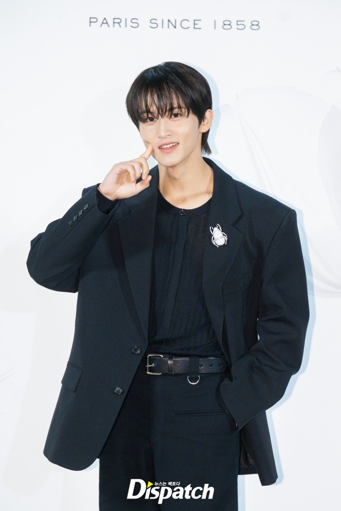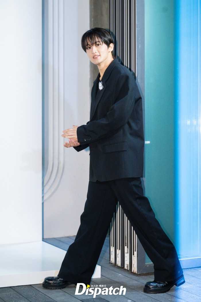 마크는 올블랙 수트로 멋을 냈다. 잘생긴 비주얼이 시선을 사로잡았다.