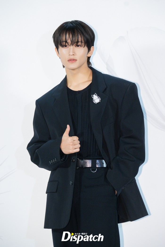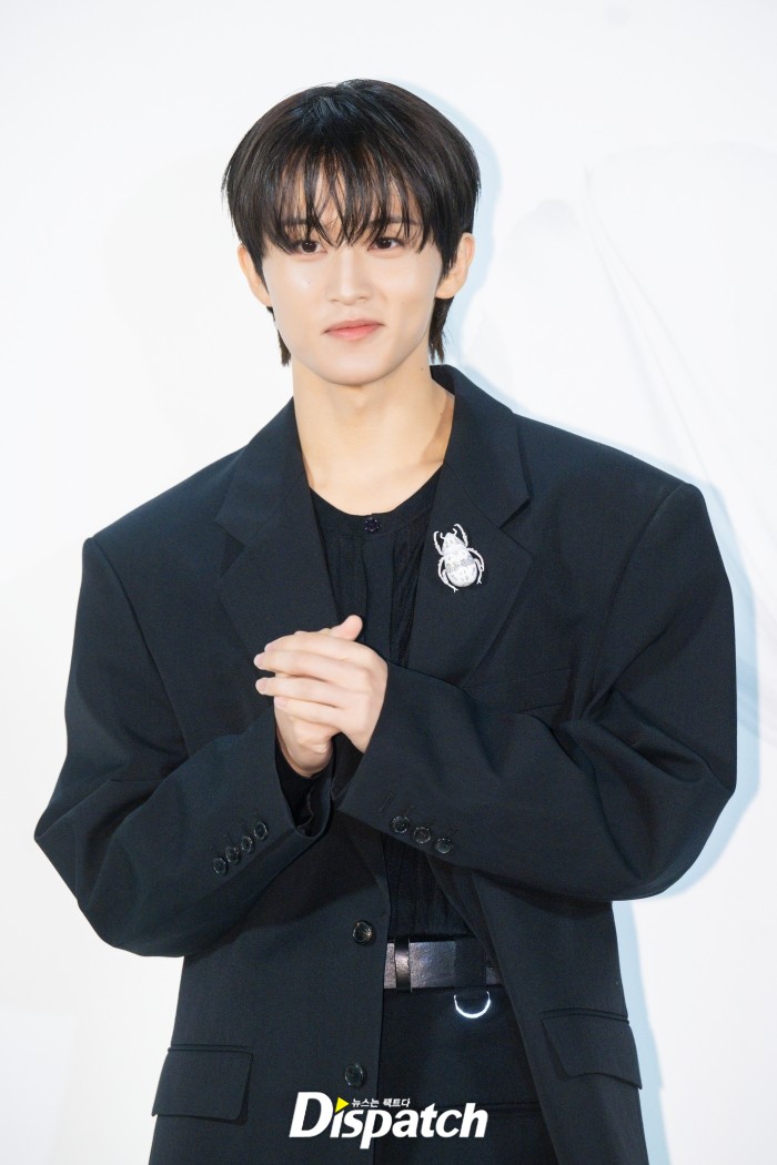마크는 올블랙 수트로 멋을 냈다. 잘생긴 비주얼이 시선을 사로잡았다.