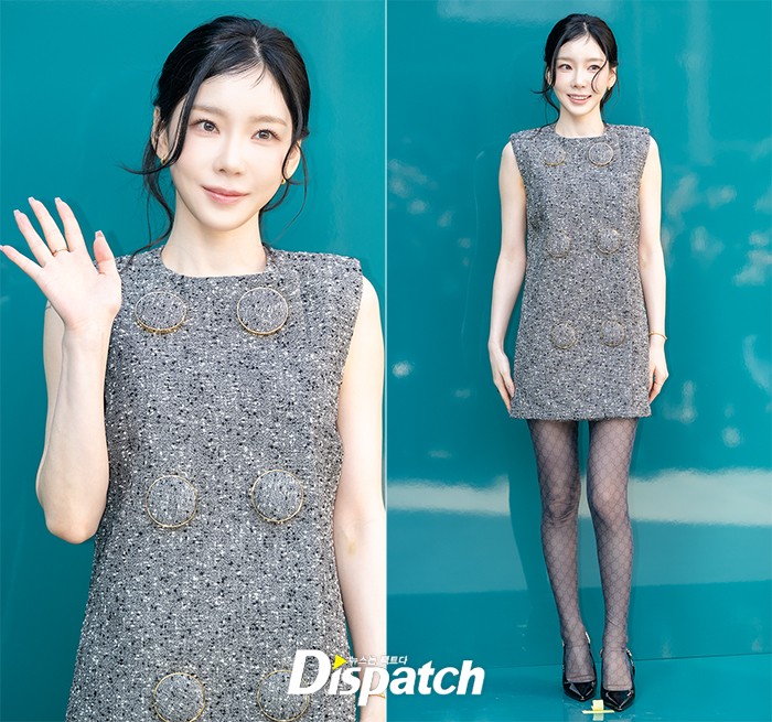 태연은 그레이 원피스로 맵시를 뽐냈다. 다양한 포즈로 남심을 사로잡았다.