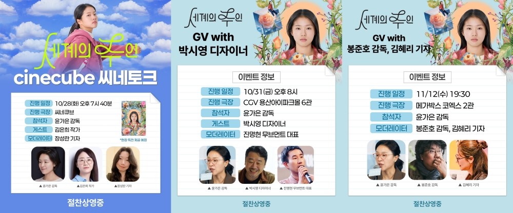 윤 감독은 다음 달 5일, 아트나인에서 민용준 영화 저널리스트와 시네마구구를 진행한다. 7일 상상마당에서 서수빈, 김정식, 강채윤, 김예창, 김민지, 오정원 등 주역들과 함께 관객을 만난다.