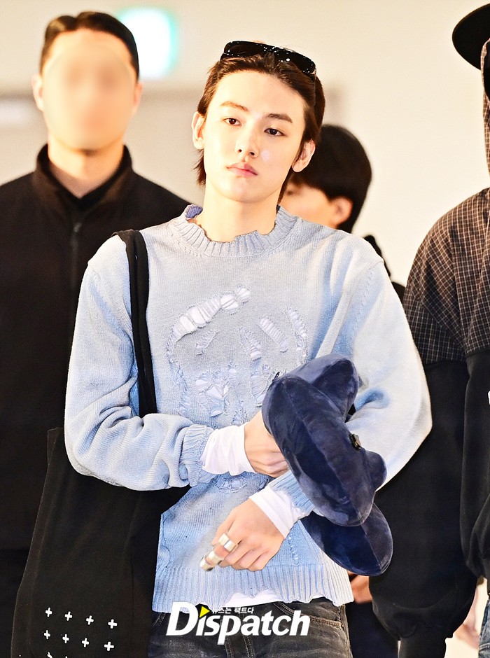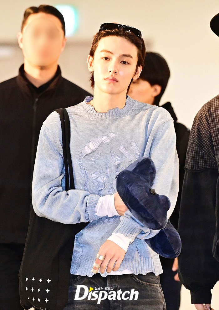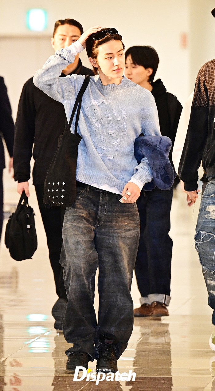 성현은 훈훈한 비주얼로 눈길을 끌었다. 블루 컬러의 니트로 연출한 산뜻한 공항패션도 돋보였다.