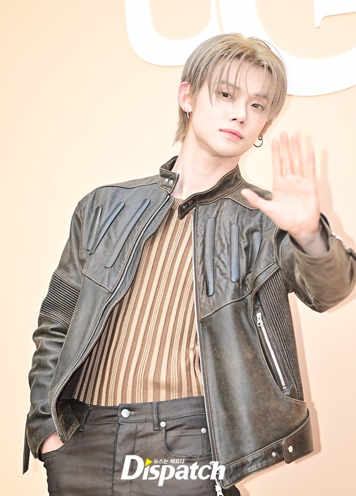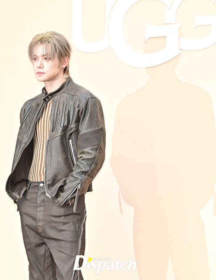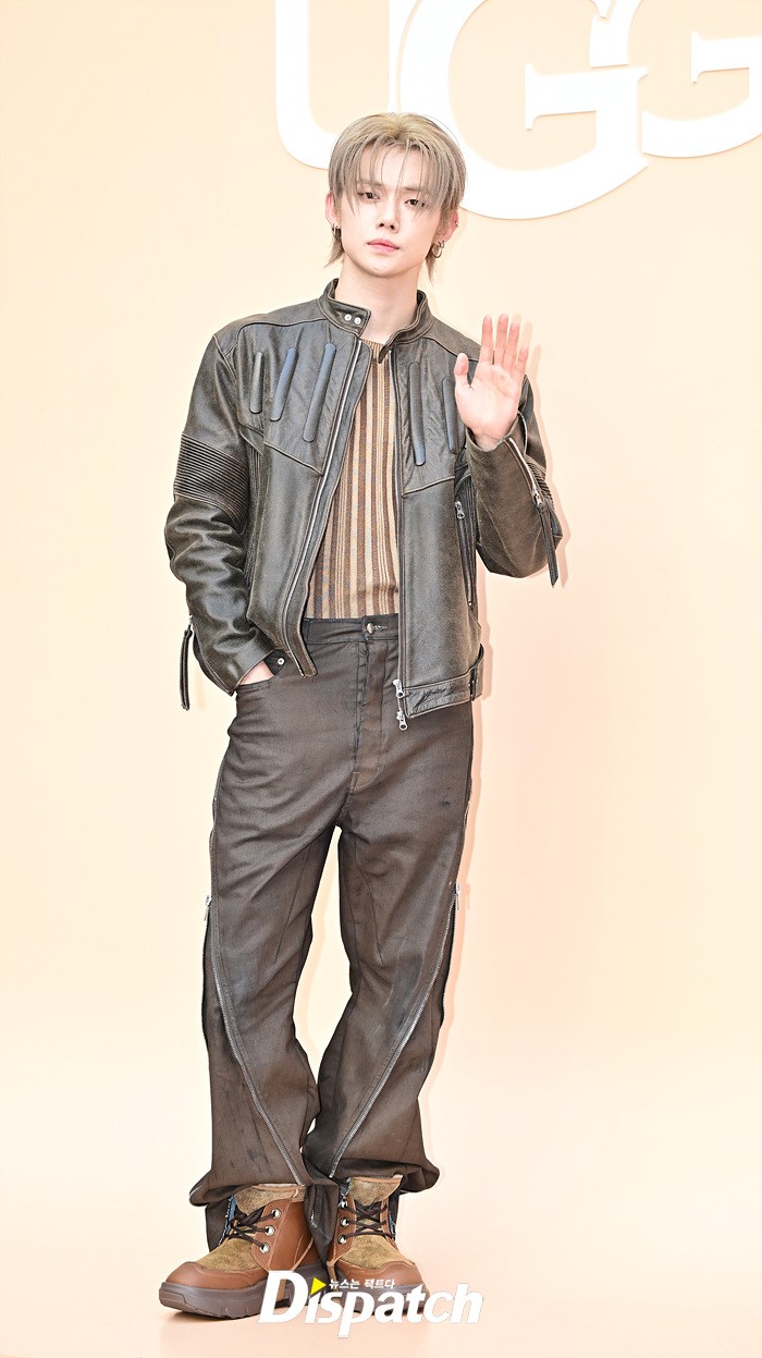 연준은 가죽 소재의 재킷과 팬츠로 남다른 패션감각을 뽐냈다. 훈훈한 비주얼과 스윗한 미소도 돋보였다.