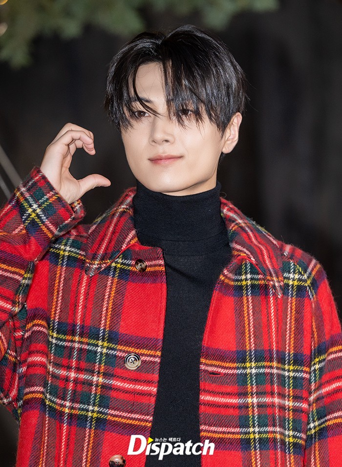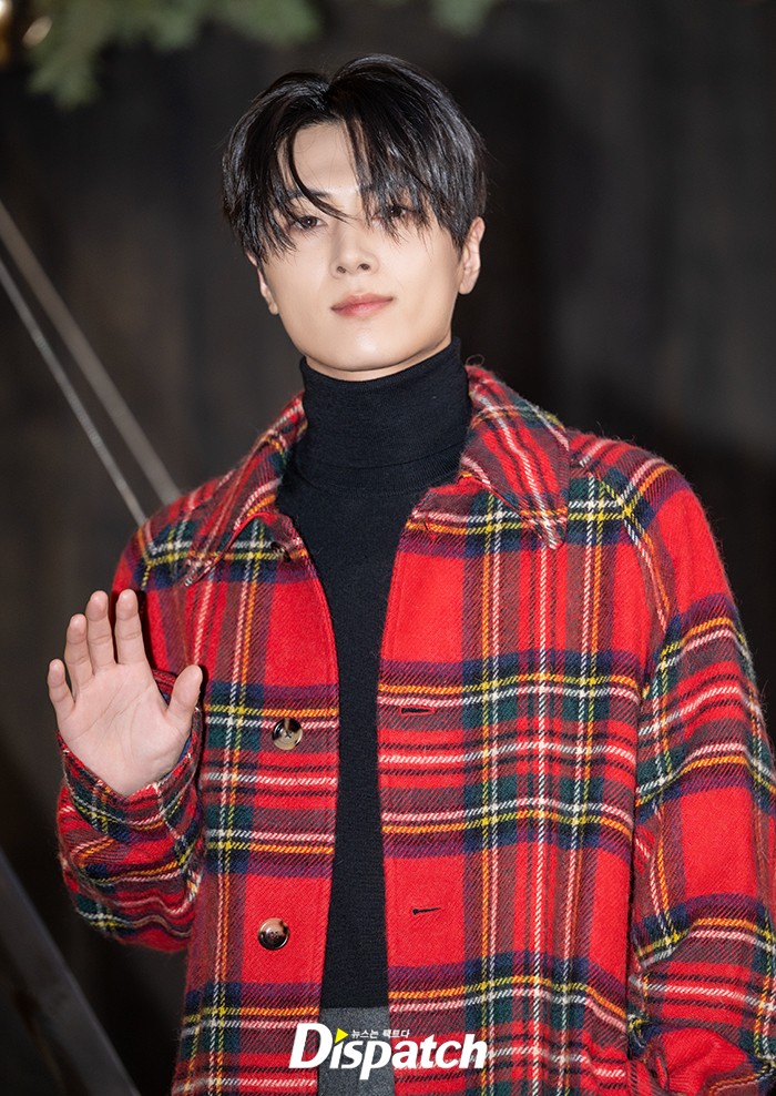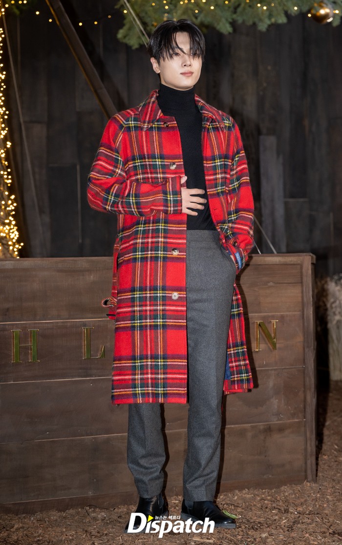 제이는 레드체크 패턴의 코트로 화려한 멋을 냈다. 멋진 비주얼로 여심을 사로잡았다.