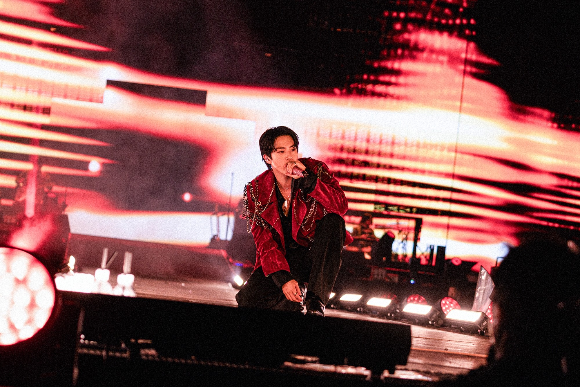 다양한 특수 효과로 분위기를 끌어올렸다. 시작부터 릴레이 화약과 에어샷이 터졌다. 아미는 "김석진"을 연호하며 열기를 더했다.