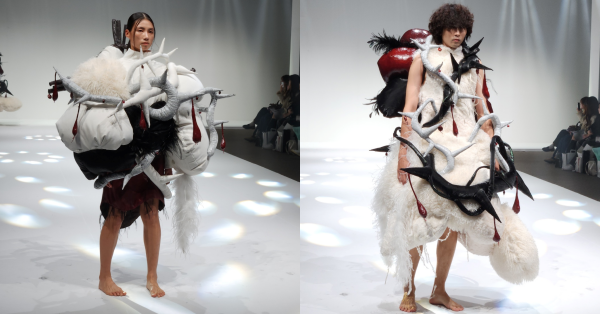 '결속(bound)·울림(sound)·상처(wound)·발견(found)'을 주제로 열린 이번 패션쇼에는 졸업 예 정자 43명이 참여했다. 특히 패션 디자이너 채수진은 종교적 서사를 예술적으로 풀어내 관객의 눈길을 끌었다.
