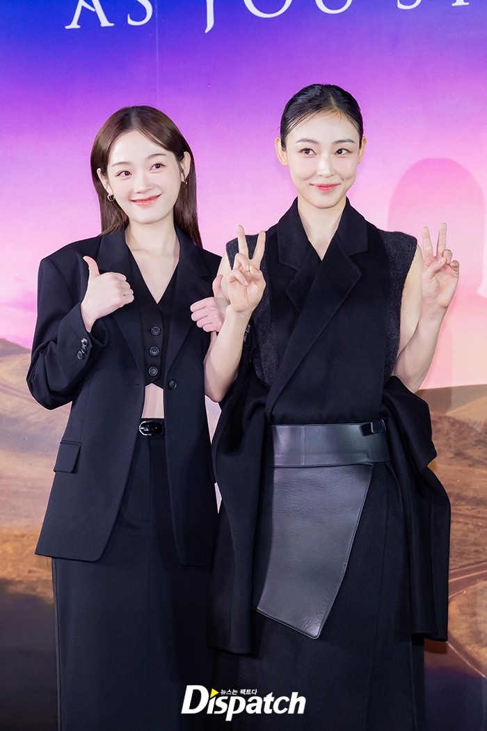 이유미와 전소니는 올블랙으로 시크한 분위기를 연출했다. 남다른 절친 포즈로 케미스트리를 자랑했다.