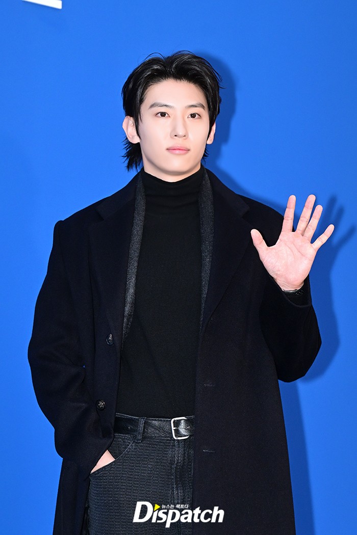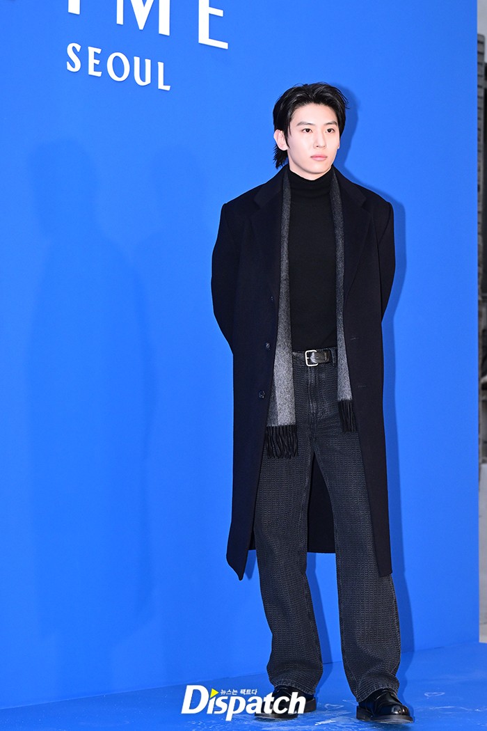 덱스는 블랙 팬츠에 롱코트를 매치해 시크한 매력을 뽐냈다. 조각같은 비주얼이 돋보였다.