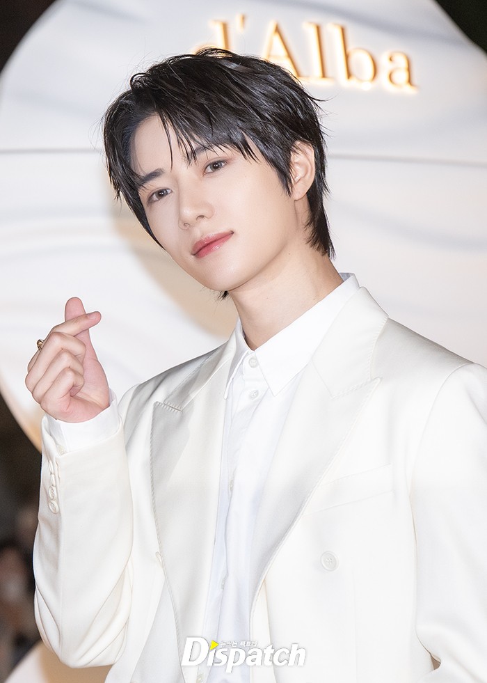 범규는 화이트 수트로 심플한 멋을 냈다. 멋진 비주얼로 여심을 사로잡았다.