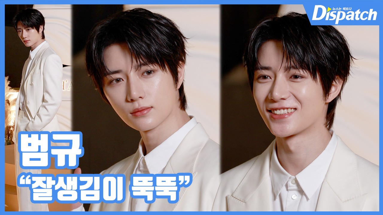 이날 범규는 올화이트 착장과 환한 미소로 취재진의 눈길을 끌었다.