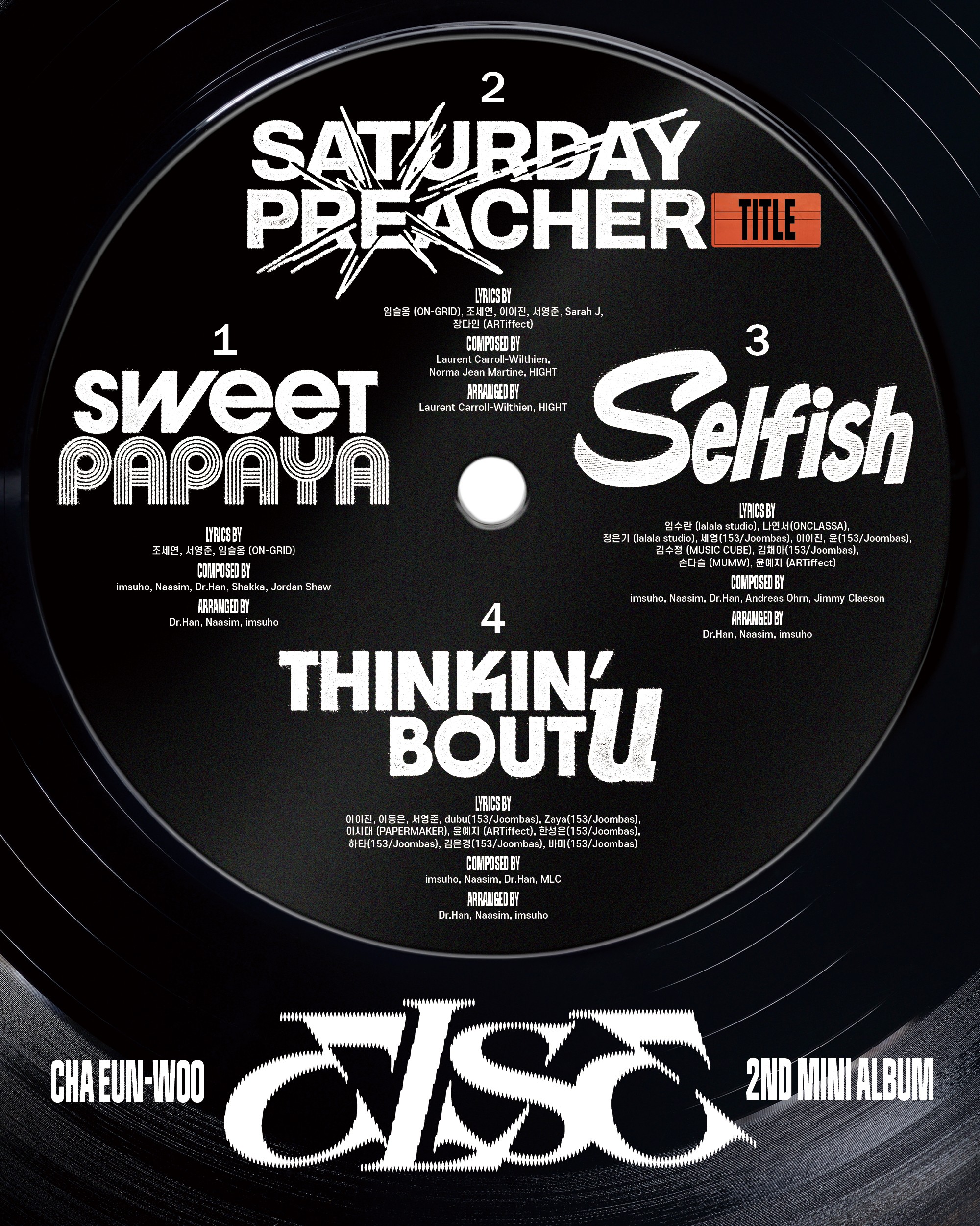 타이틀곡은 '세러데이 프리처'(SATURDAY PREACHER)다. 굵고 선명한 폰트에 불빛 모양의 이미지가 더해져 궁금증을 자극했다.