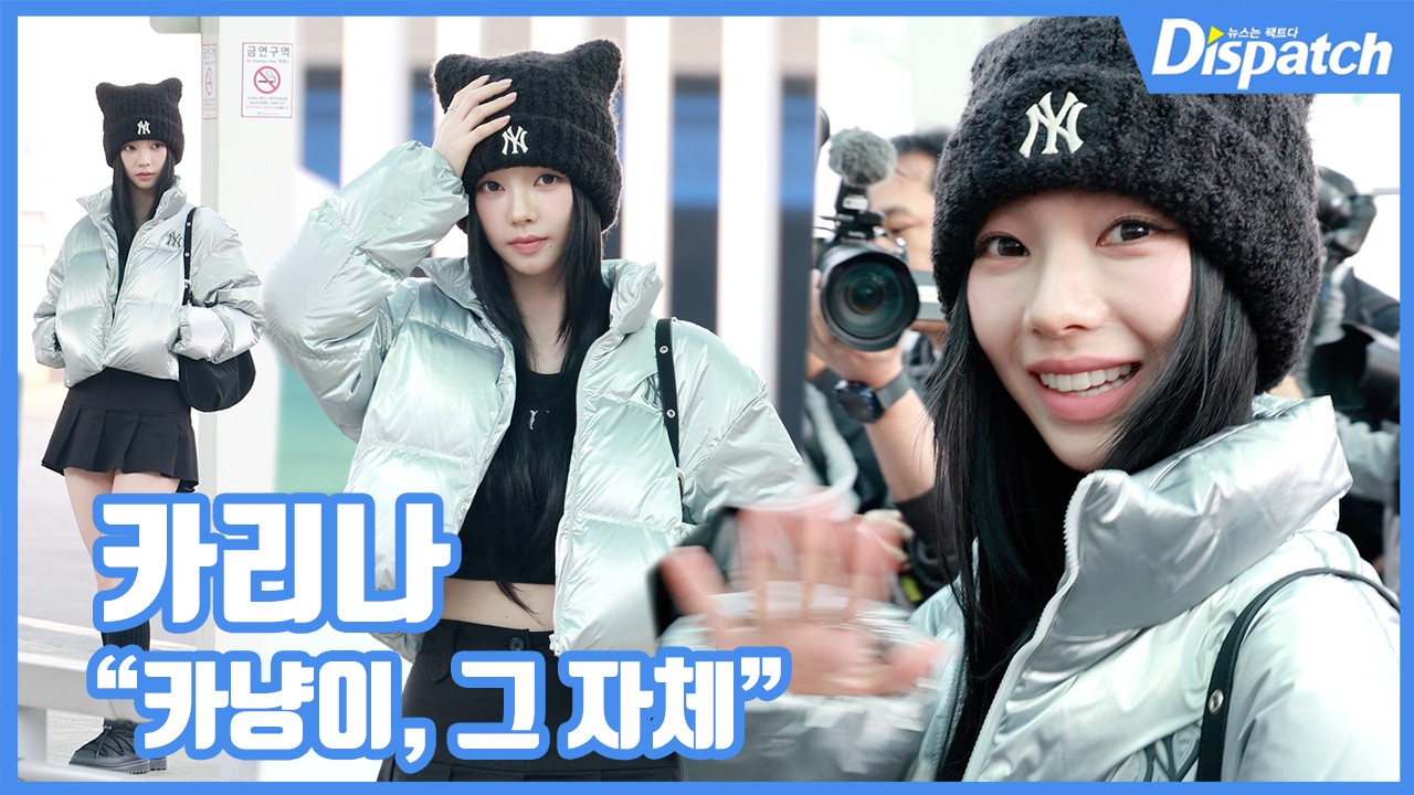 이날 카리나는 크롭 톱과 미니스커트에 실버 패딩을 더해 트렌디한 겨울 룩을 완성했다. 여기에 고양이 귀가 포인트인 모자를 착용해 특유의 러블리한 매력을 한층 돋보이게 했다.