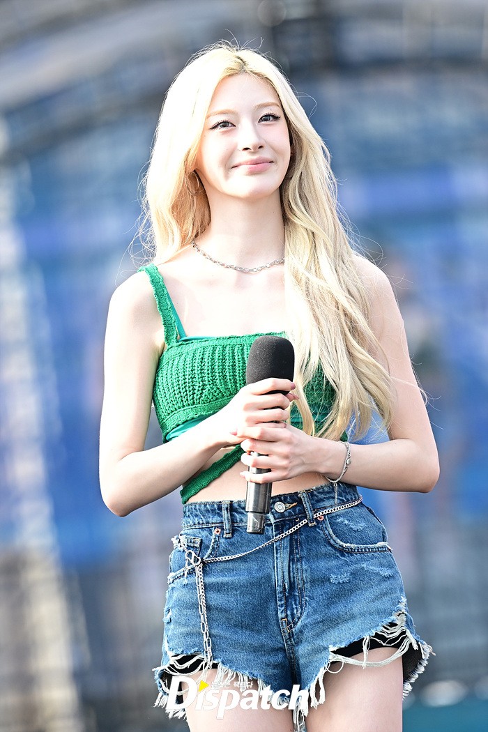 6인 6색 눈부신 미모로 시선을 강탈했다. 멤버들은 핫팬츠에 그린 컬러의 탱크톱을 매치, 청량한 매력을 뽐냈다. 마카오의 무더위를 잊게 만드는 비주얼이었다.