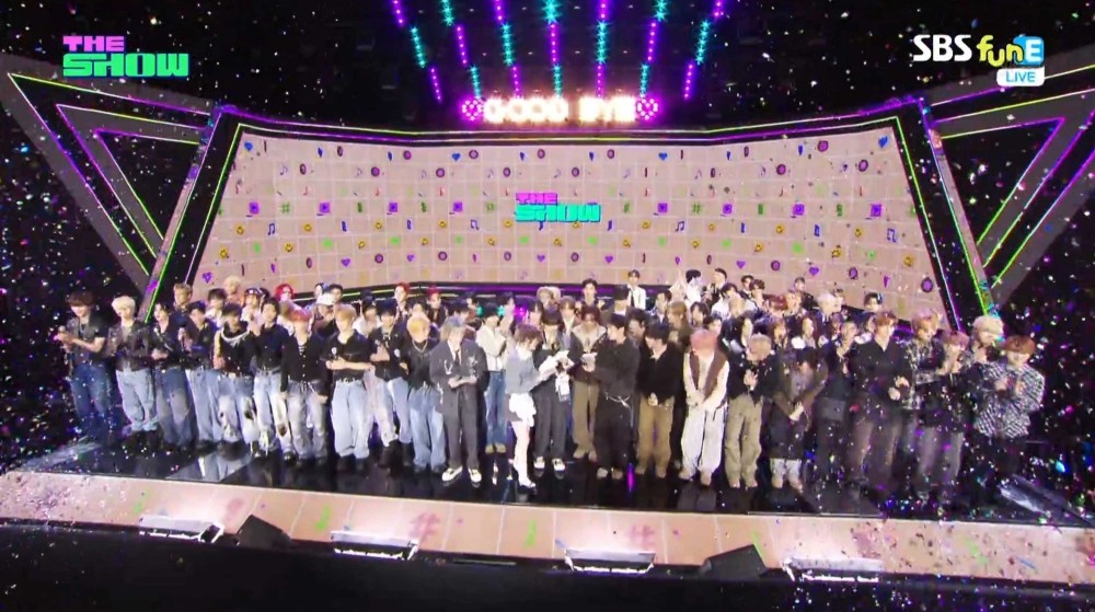 일주일 만에 정상에 등극했다. 이들은 지난 7월 데뷔 일주일 만에 첫 음악방송 1위에 오른 바 있다. 이번에도 압도적인 점수 차로 트로피를 안았다.