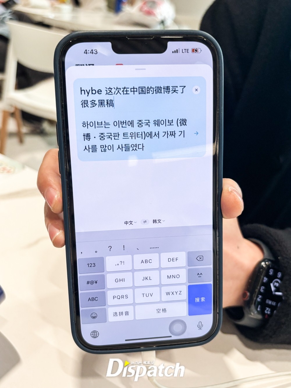"하이브가 웨이보에서 가짜 기사를 많이 사들였다!" (중국팬)
