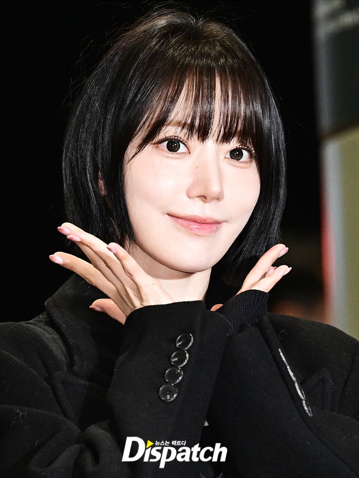 사쿠라는 블랙 컬러의 롱코트로 가을 패션을 정석을 선보였다. 인형같은 이목구비와 러블리한 미소도 돋보였다.
