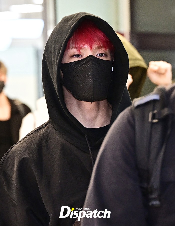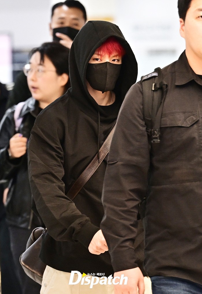 제노는 강렬한 눈빛으로 입국장을 나섰다. 후드집업에도 눈부신 레드헤어가 인상적이였다.