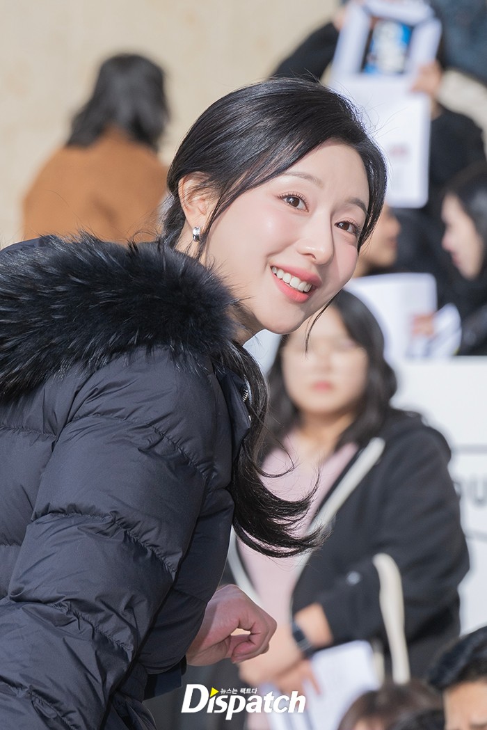 김지원은 블랙 롱패딩 코트와 롱부츠로 멋을 냈다. 인형같은 미모가 시선을 사로잡았다,