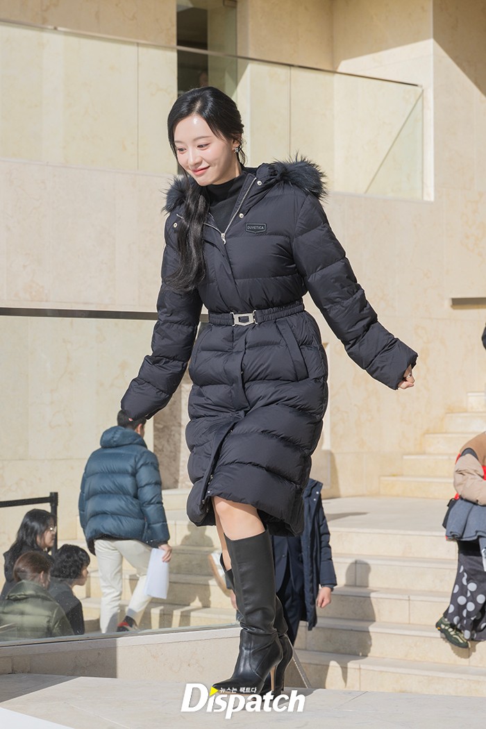 김지원은 블랙 롱패딩 코트와 롱부츠로 멋을 냈다. 인형같은 미모가 시선을 사로잡았다,