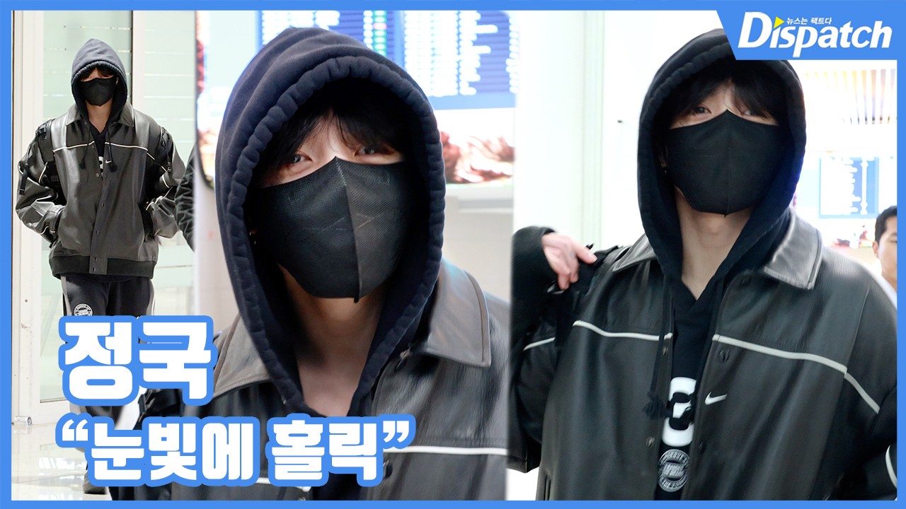 '방탄소년단(BTS)' 정국이 완전무장을 했음에도 불구하고 멀리서도 눈부신 아우라를 발산하며 입국장을 나섰다.