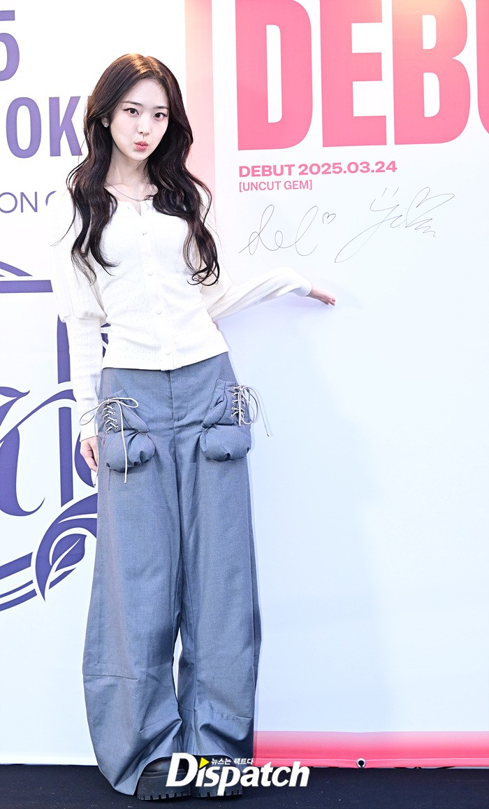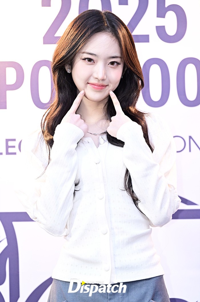 이솔은 상큼한 비주얼로 러블리한 매력을 뽐냈다. 인형같은 이목구비와 해맑은 미소로 취재진의 시선을 모았다.