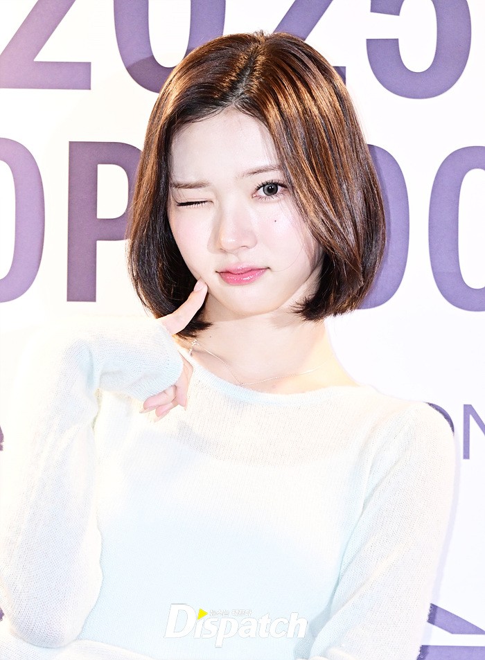 지우는 인형같은 비주얼로 눈길을 끌었다. 러블리한 단발헤어도 돋보였다.