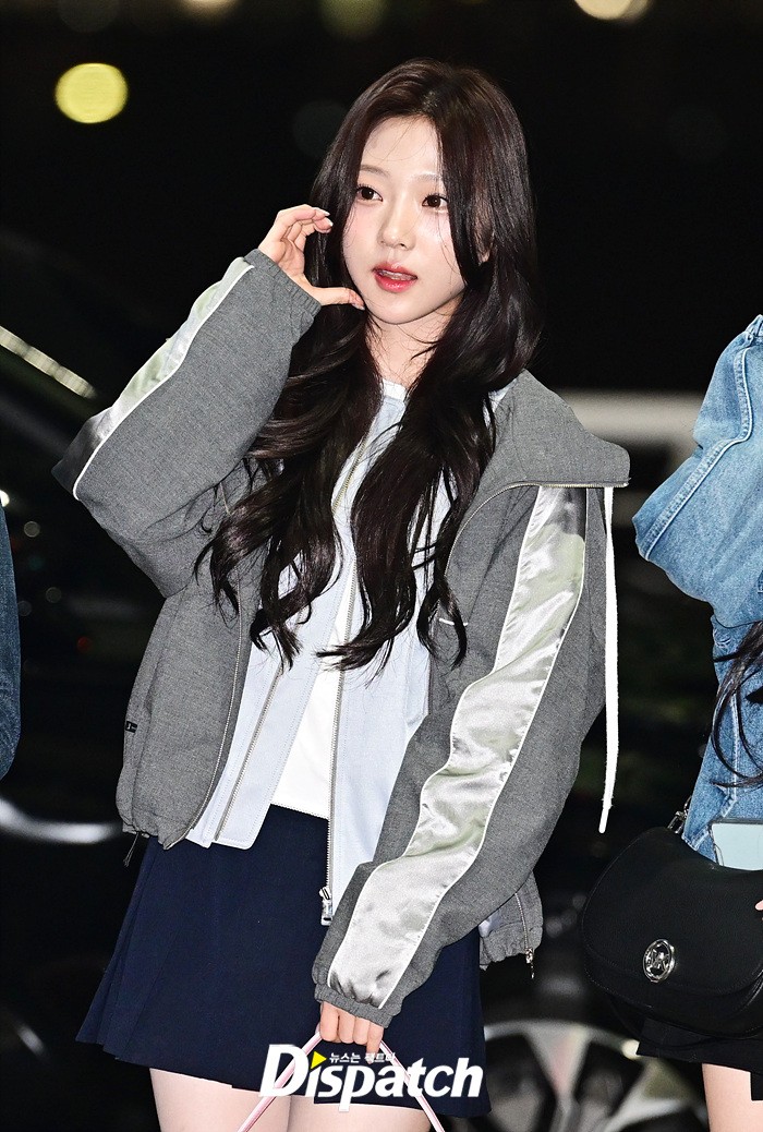 스텔라는 그레이 컬러의 재킷과 네이비 스커트로 캐주얼한 공항패션을 연출했다. 청순한 비주얼과 러블리한 미소도 돋보였다.