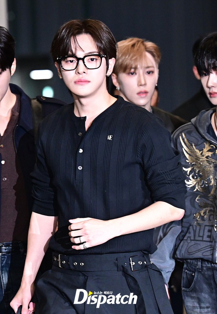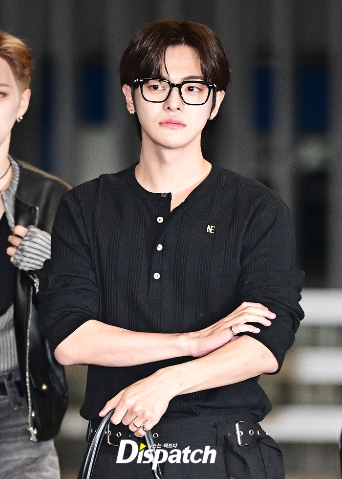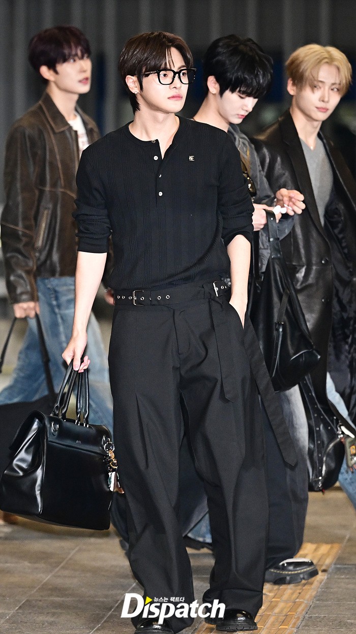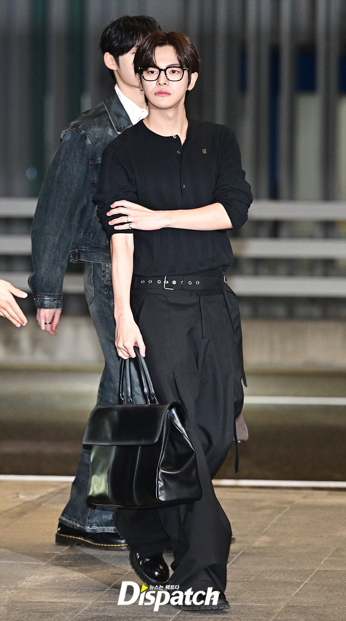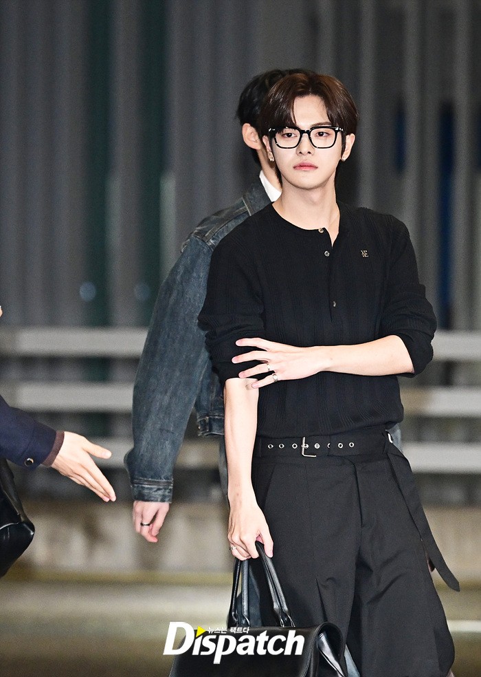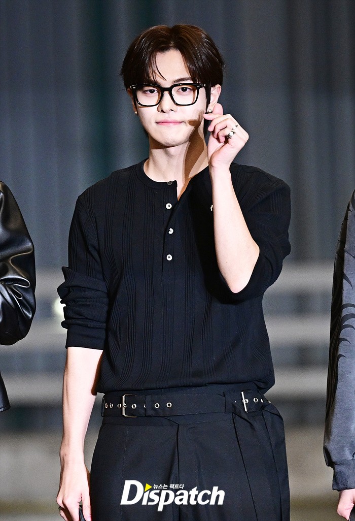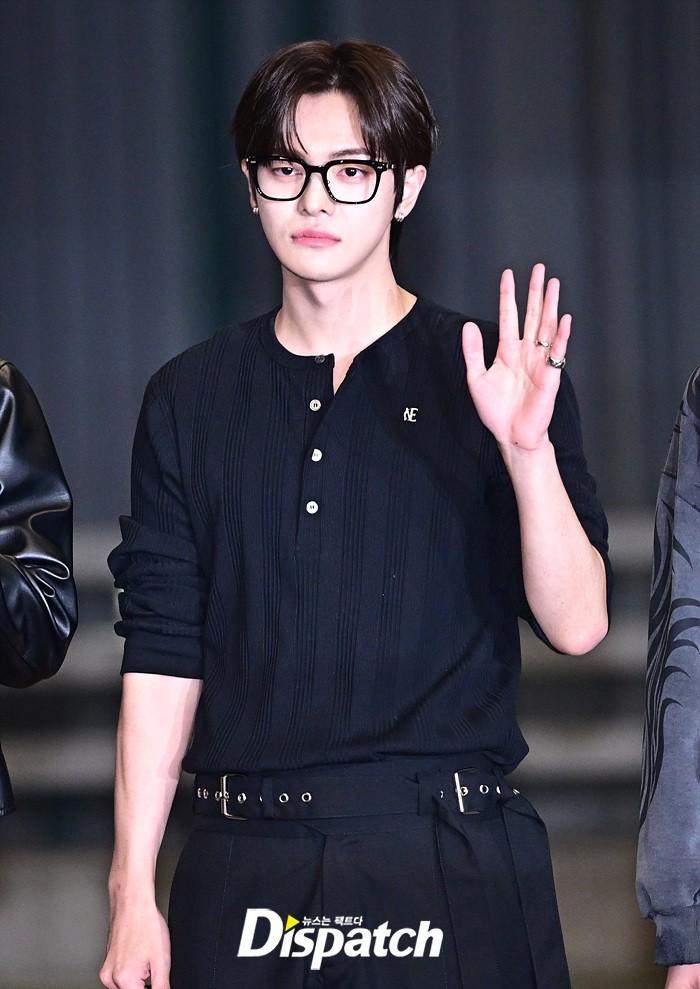 리오는 올블랙 스타일로 시크한 공항패션을 연출했다. 공항에 모인 팬들을 위해 다양한 포즈로 화답했다.