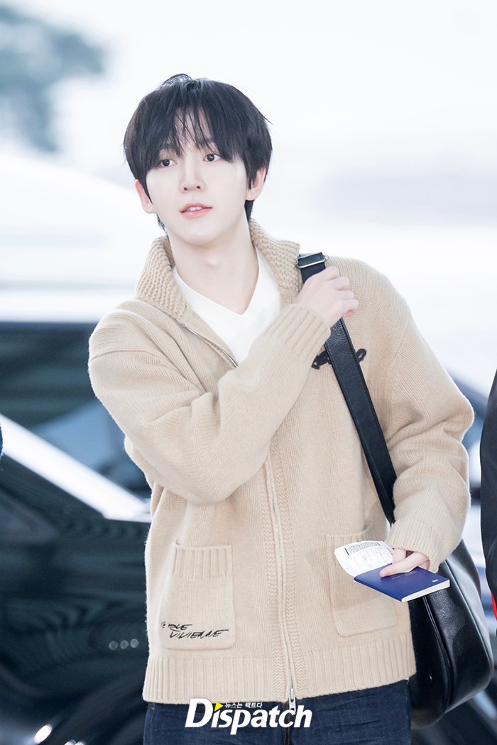 동현은 가디건과 데님팬츠로 캐주얼한 공항패션을 연출했다. 훈훈한 비주얼도 돋보였다.