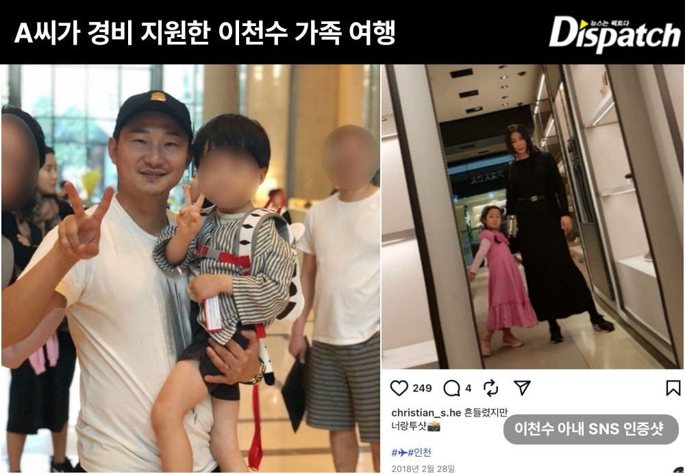 2018년, A씨 가족과 이천수 가족이 태국 고급 호텔에서 기념사진을 찍었다. 이 두 집안은 함께 가족여행을 떠날 정도로 친했다. 특히 A씨는 이천수를 친동생처럼 아꼈다.