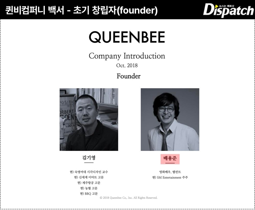 당시 배용준과 김기영 등은 각각 20% 내외의 지분을 소유한 것으로 확인된다. ’퀸비‘ 재단의 땡처리 금액은 40억 원. 배용준 등이 챙긴 돈은 8억 원 내외로 추정된다.