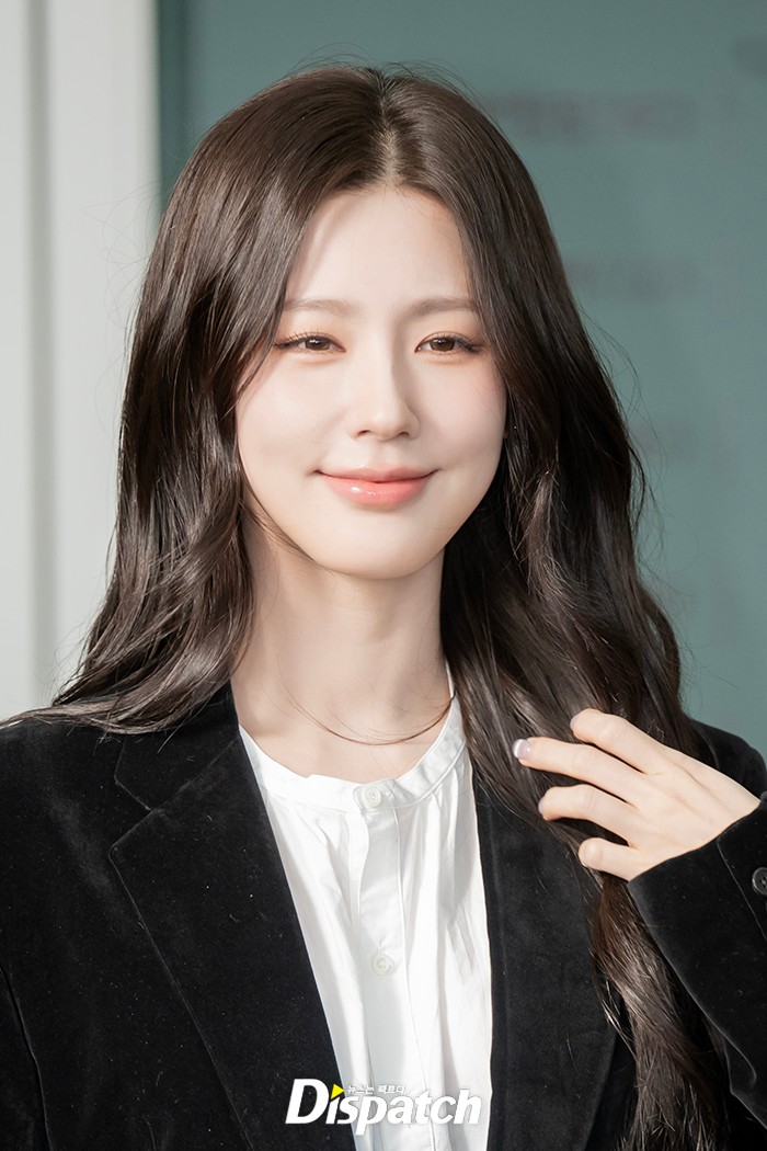 미연은 블랙 벨벳 재킷과 데님 팬츠로 심플한 공항 패션을 완성했다. 아름다운 미모가 돋보였다.