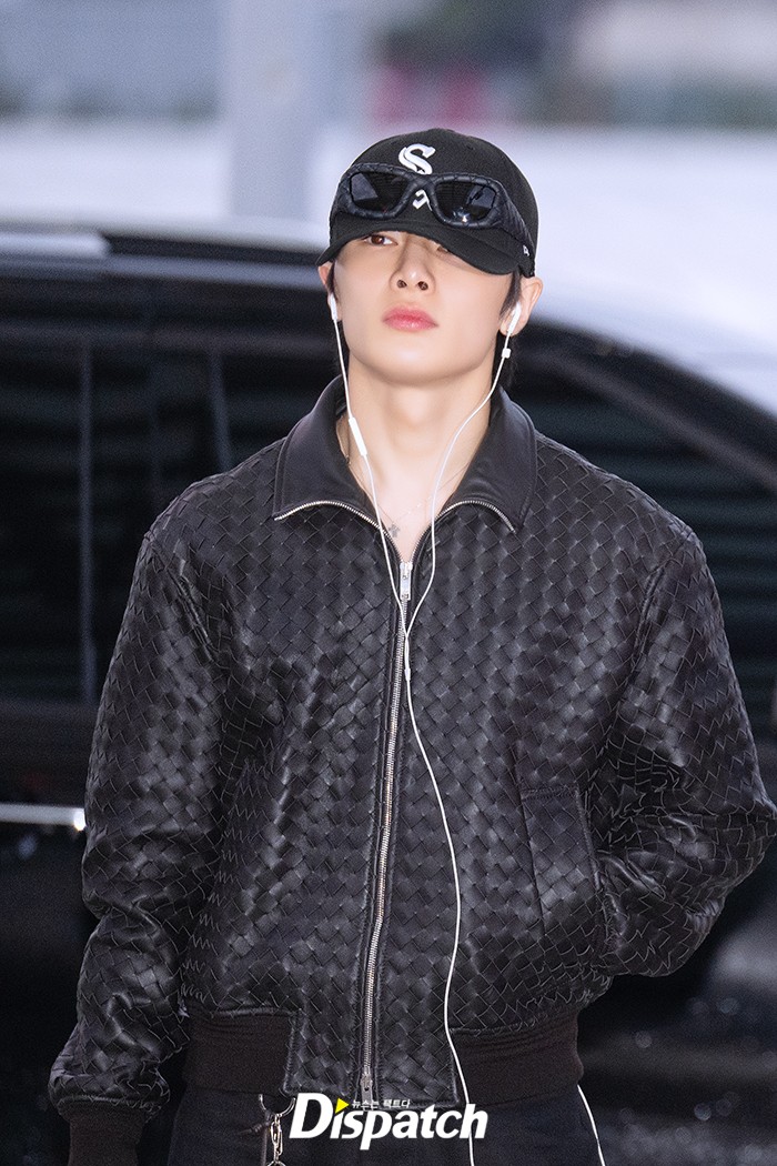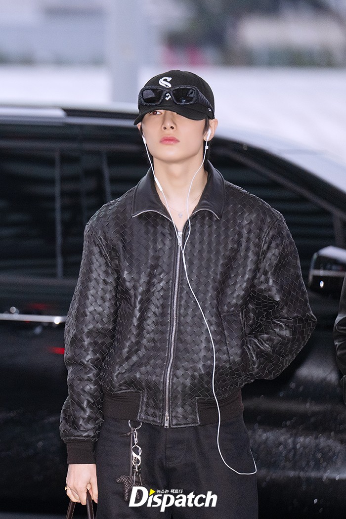 아이엔은 블랙 팬츠에 레더 재킷으로 시크한 공항패션을 연출했다. 조각같은 비주얼이 돋보였다.