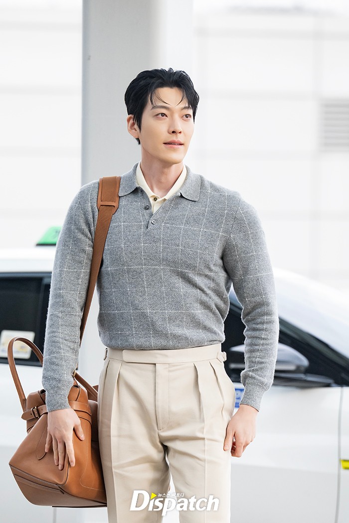 김우빈은 그레이 니트와 치노 팬츠로 댄디한 스타일링을 연출했다. 잘생긴 비주얼과 젠틀한 매너가 시선을 사로잡았다.