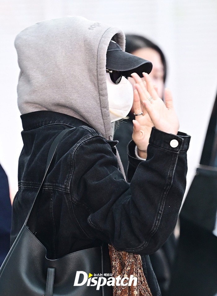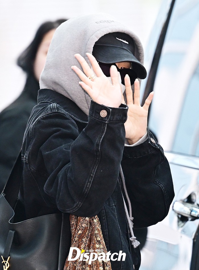 로제는 후드집업과 마스크로 얼굴을 감쌌다. 장시간 비행에도 공항에 모인 팬들을 위해 다양한 포즈로 화답했다.