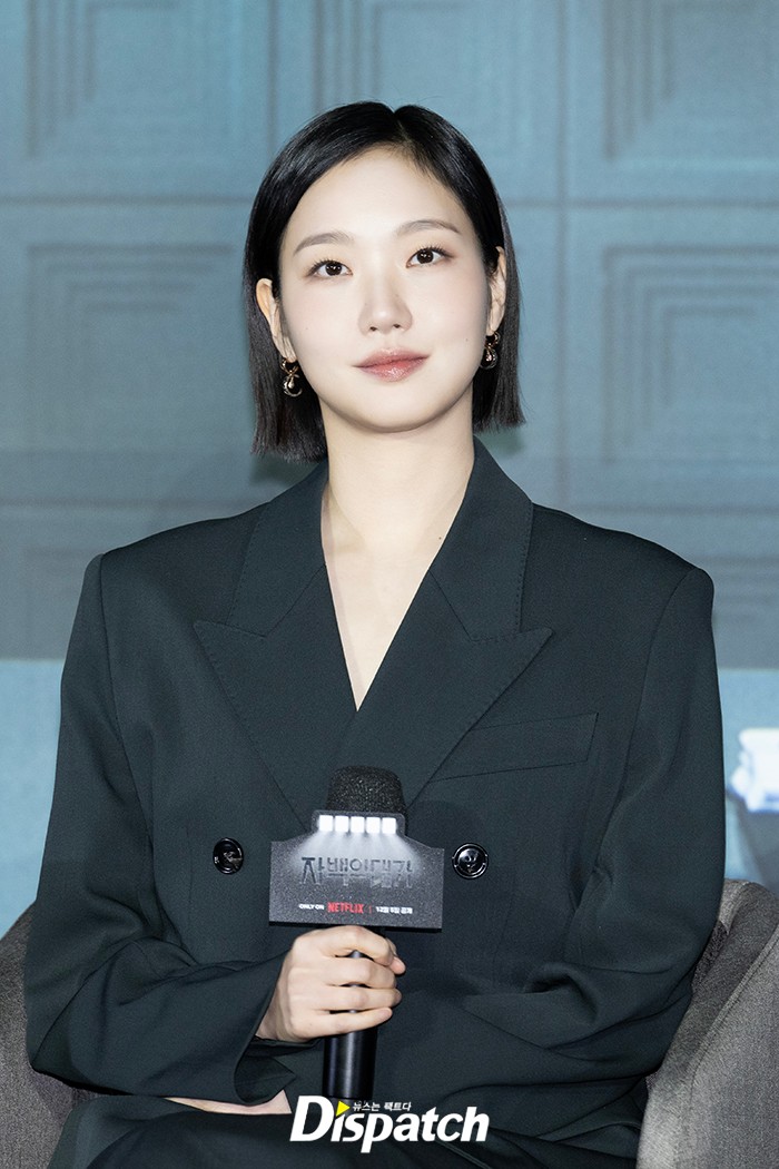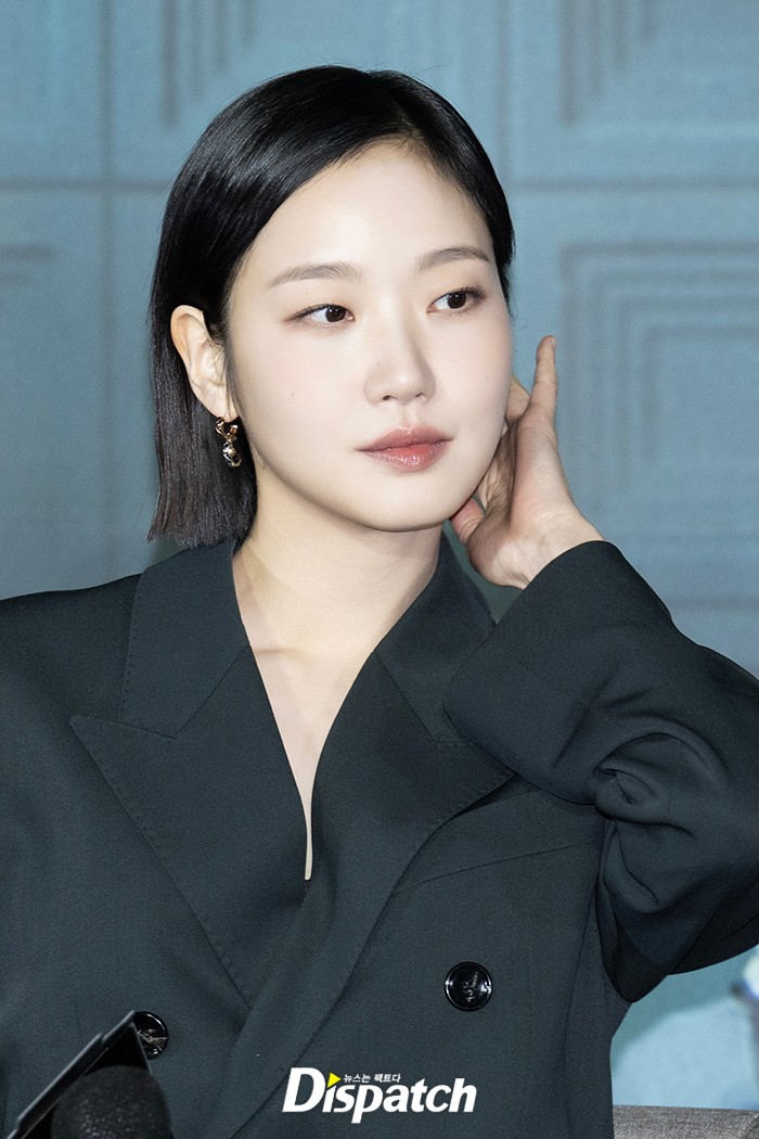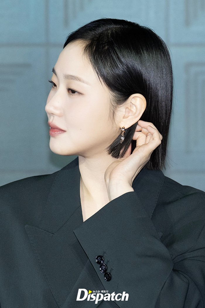 김고은은 그레이 수트로 매니시한 분위기를 연출했다. 똑단발 헤어스타일이 매력을 더했다.