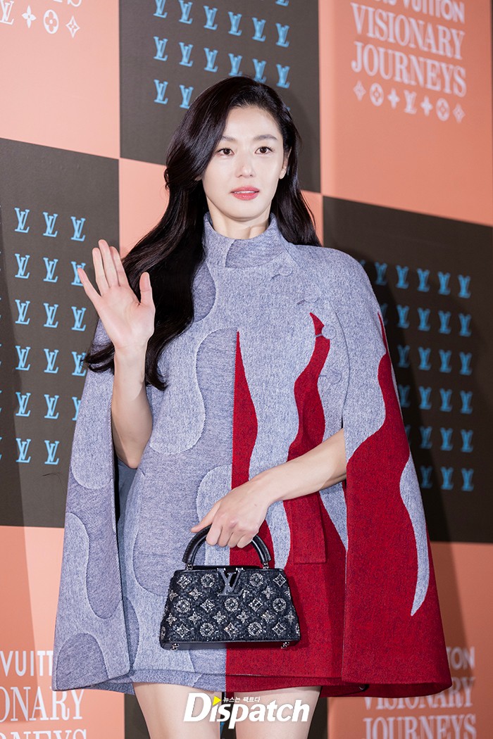 전지현은 케이프 원피스로 멋을 냈다. 아름다운 미모가 돋보였다.