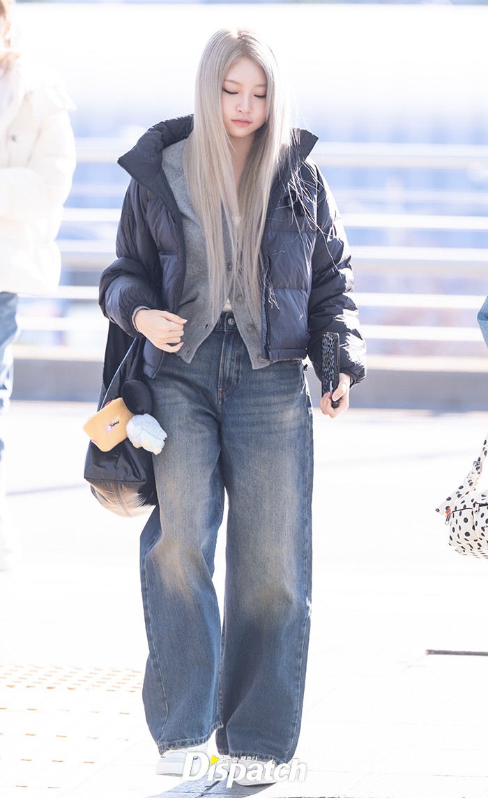 하음은 블랙 패딩과 청바지로 맵시를 뽐냈다.