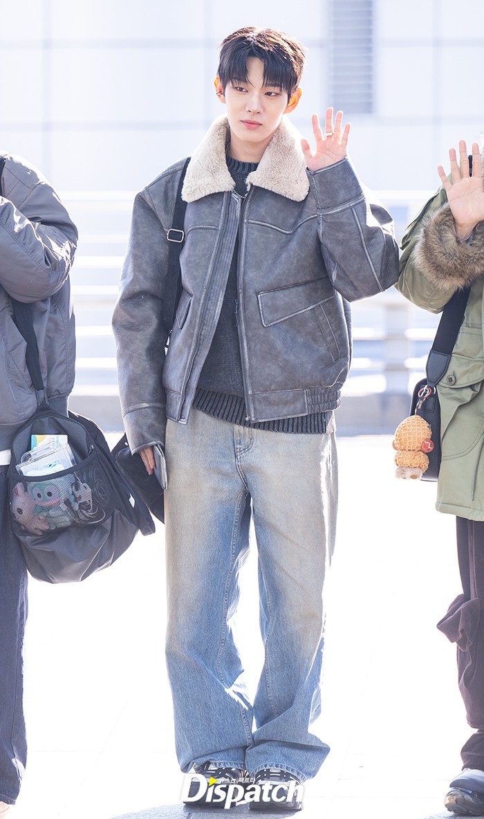 스티븐은 무스탕 자켓과 청바지로 공항패션을 보여줬다. 잘생긴 비주얼로 여심을 사로잡았다.