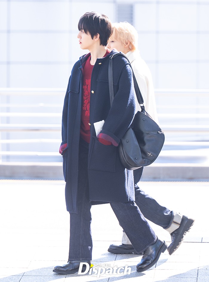 동현은 블랙 코트와 청바지로 멋을 냈다. 만찢남 비주얼로 시선을 사로잡았다.