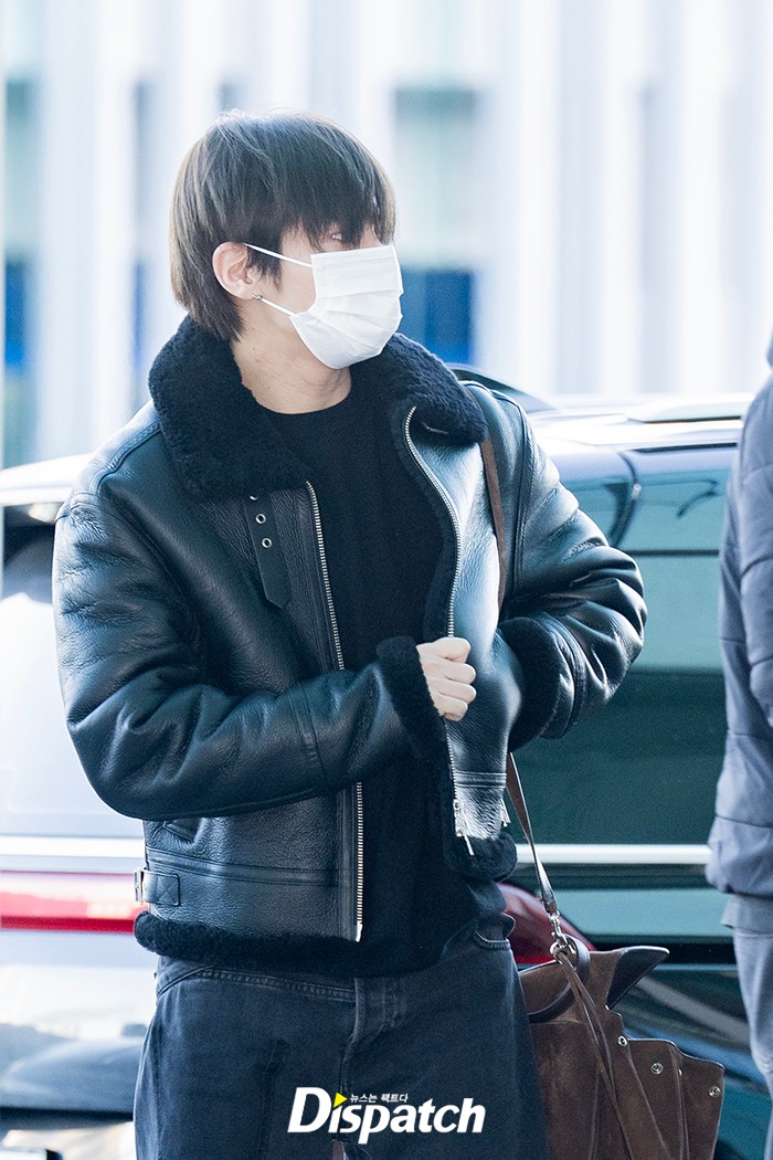 태현은 가죽 재킷과 데님 팬츠로 멋을 냈다. 잘생긴 비주얼이 돋보였다.