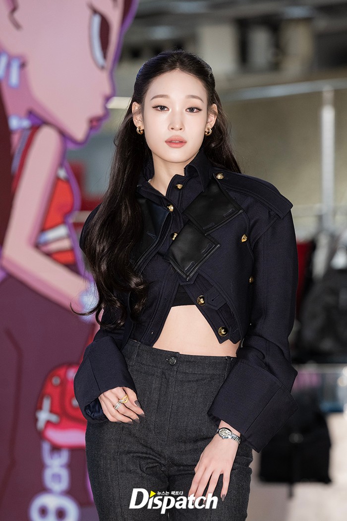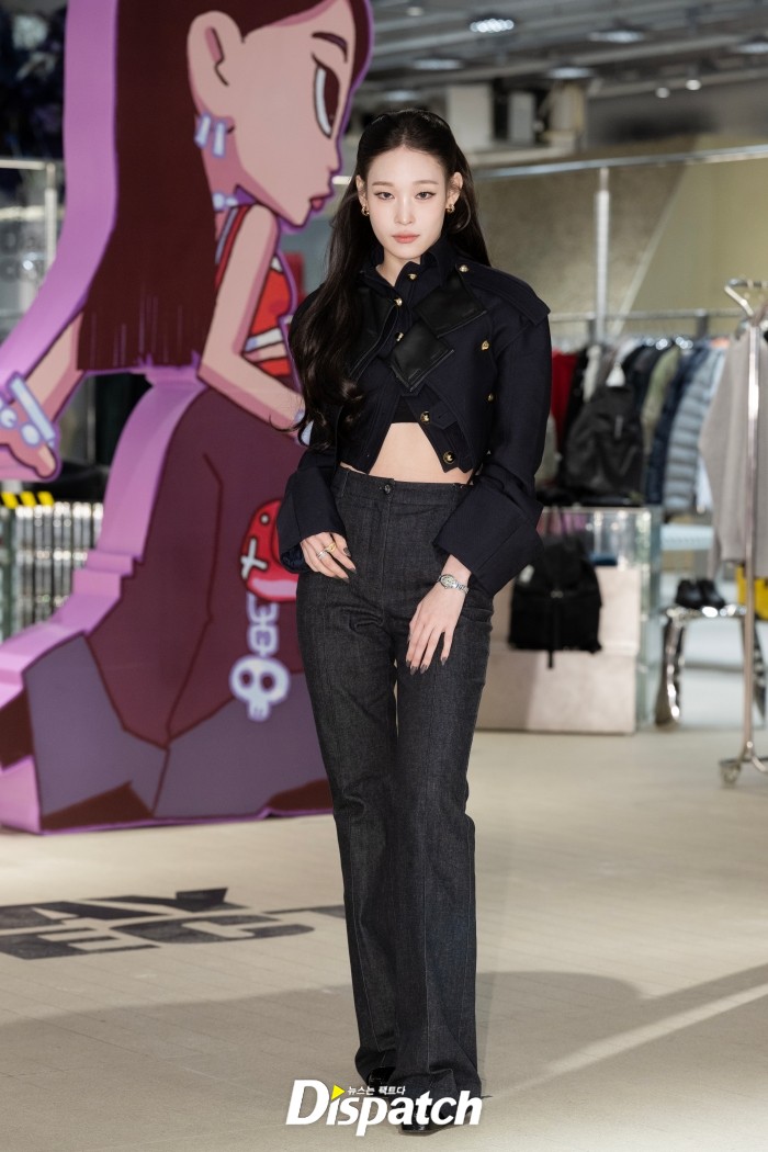 애니는 블랙 숏 재킷과 데님 팬츠로 멋을 냈다. 아름다운 비주얼이 시선을 사로잡았다.