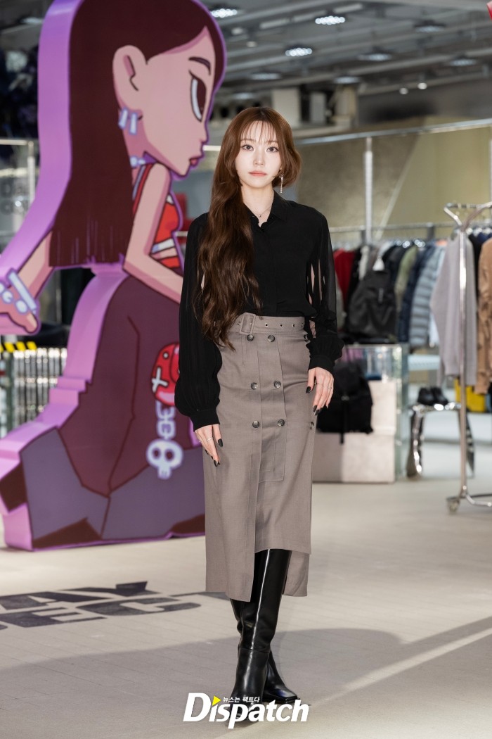 영서는 블랙 셔츠와 롱스커트로 멋을 냈다. 아름다운 미모가 시선을 사로잡았다.