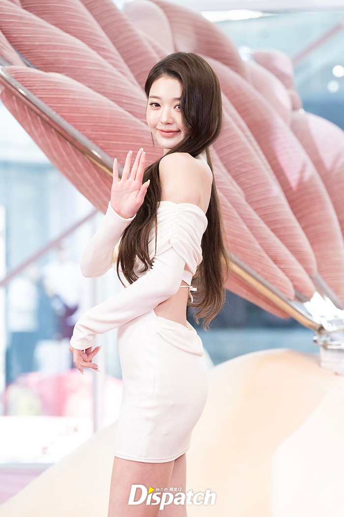 장원영은 화이트 튜브톱 드레스로 아름다움을 뽐냈다.
