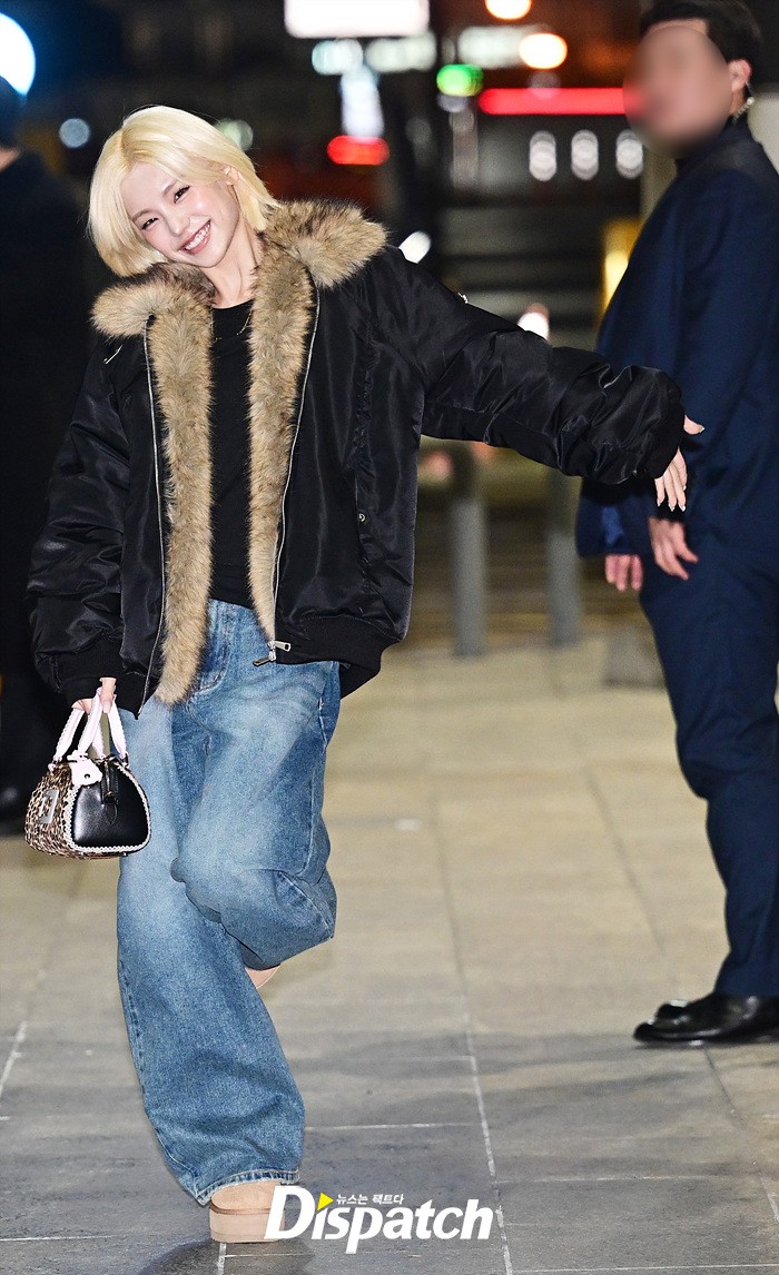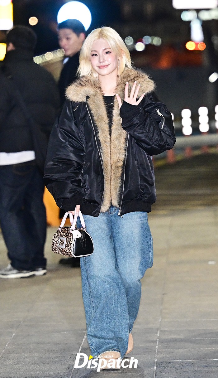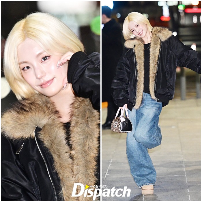 예지는 퍼 재킷과 데님진으로 캐주얼한 공항패션을 연출했다. 이른 아침에도 다양한 포즈로 러블리한 매력을 어필했다.