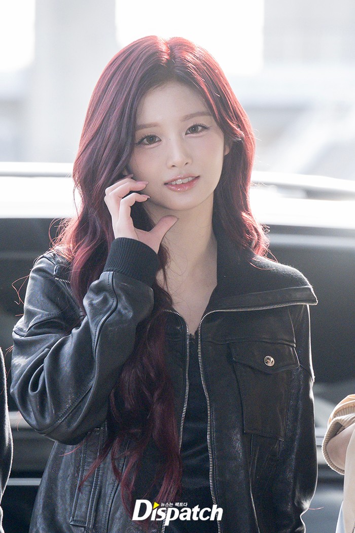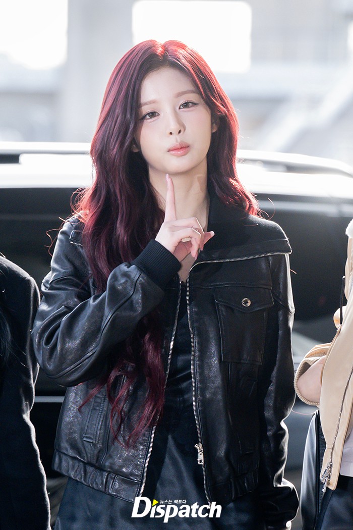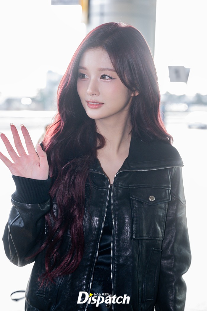 설윤은 가죽 재킷과 블랙 실크 원피스로 멋을 냈다. 섹시한 매력이 돋보였다.